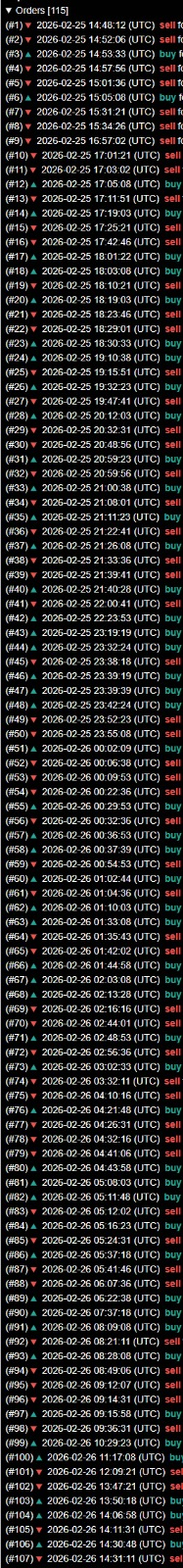 - Emotionless, High-Frequency Execution: Throughout this extreme volatility, the AI executed precisely 115 trades. While a human trader might freeze in fear or hesitate, the algorithm operated with millisecond precision, flawlessly executing dynamic scaling (adding/reducing positions), hedging, and micro-swing arbitrage.